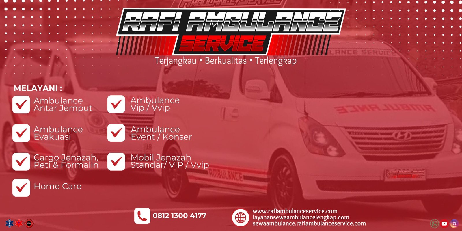 ☎ Hubungi kami di 0812-1300-4177 untuk layanan cepat dan profesional. Kami siap membantu Anda kapan saja dengan sepenuh hati, memastikan keselamatan dan kenyamanan pasien selama perjalanan jauh.